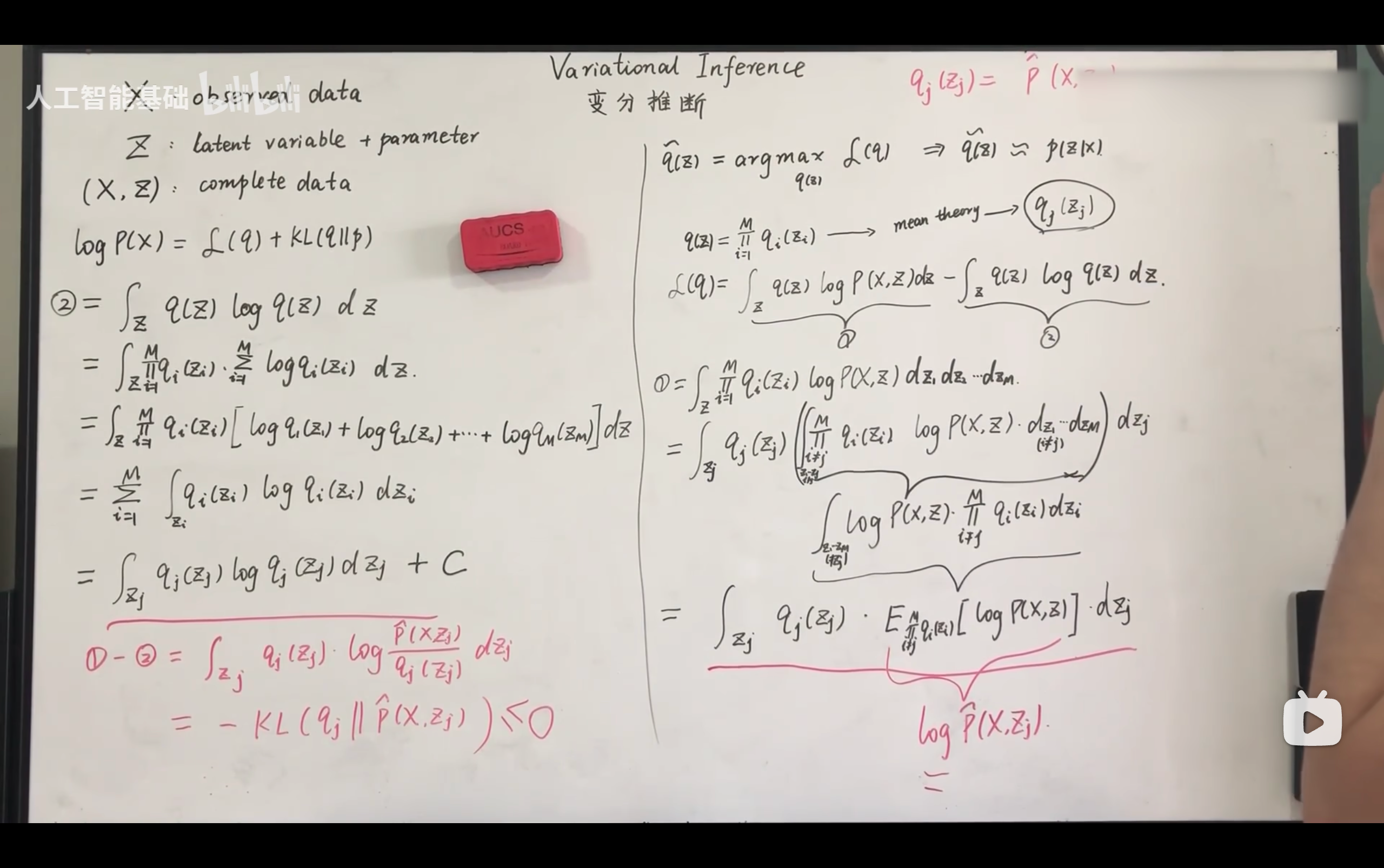 - 当且仅当q_{j}(z_{j}) = p(x,z_{j})时,L(q)有最大值为0。